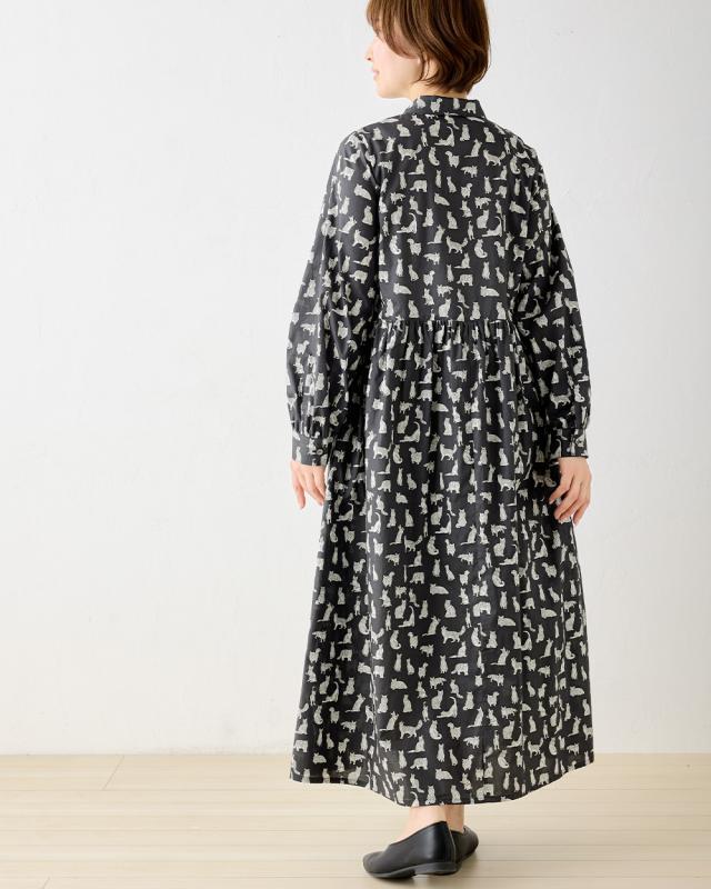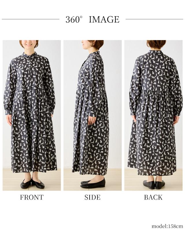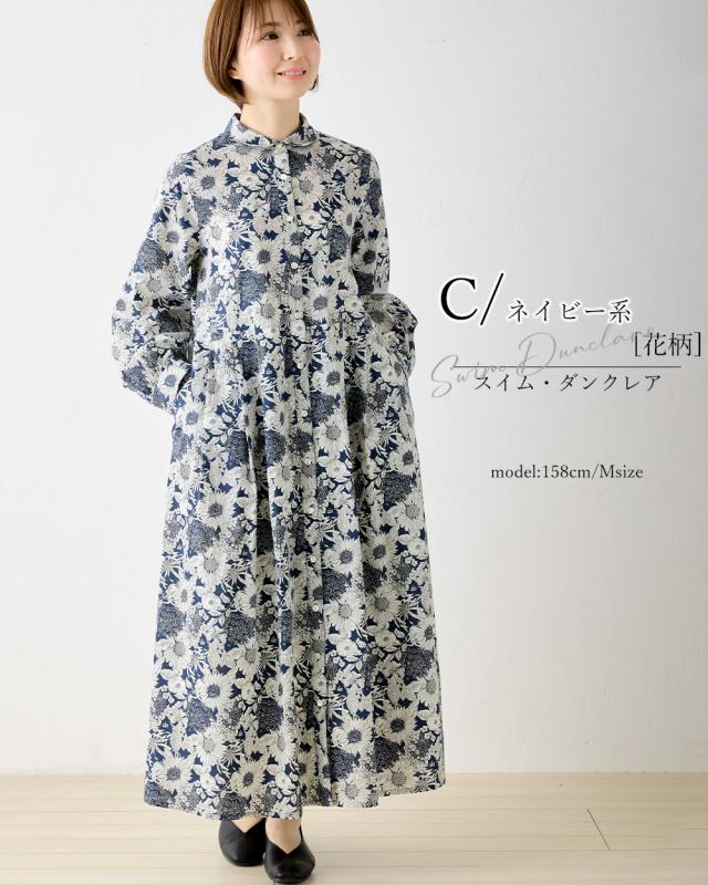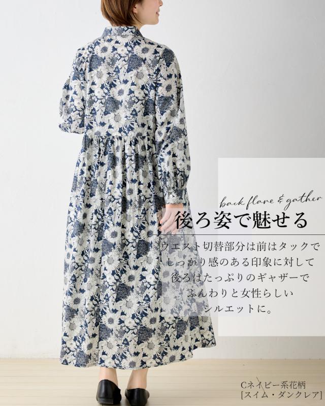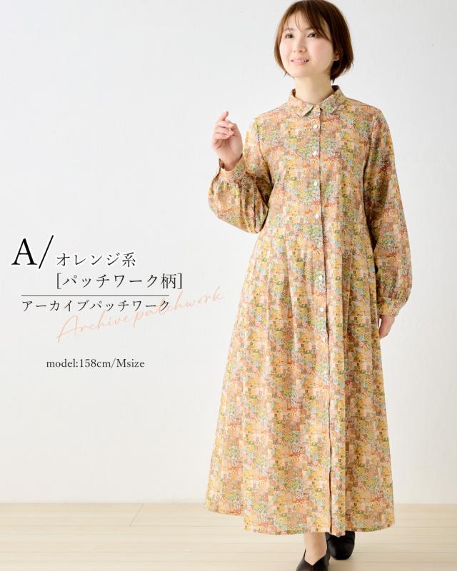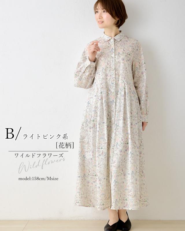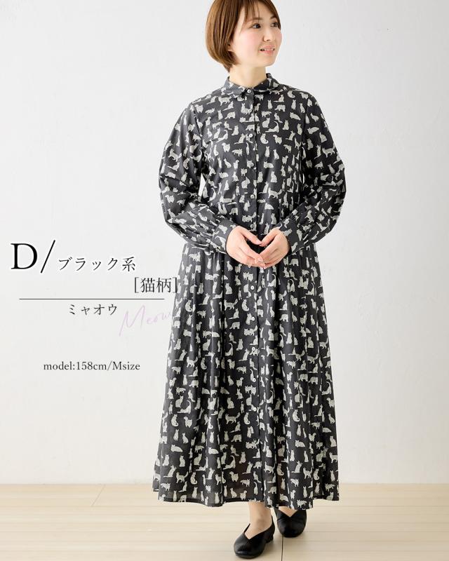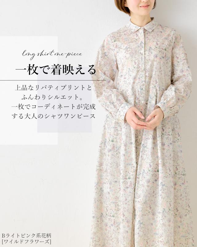 【リバティ タナローン】ワンピース レディース 大人 ロング丈 ロングワンピース シャツワンピース 大人 綿 コットン きれいめ 長袖 aライン 30代 40代 50代 春 夏 秋 花柄 プリント マキシ丈 丈 長め 前ボタン ゆったり 体型カバー 猫 猫柄 シャツ襟 丸襟