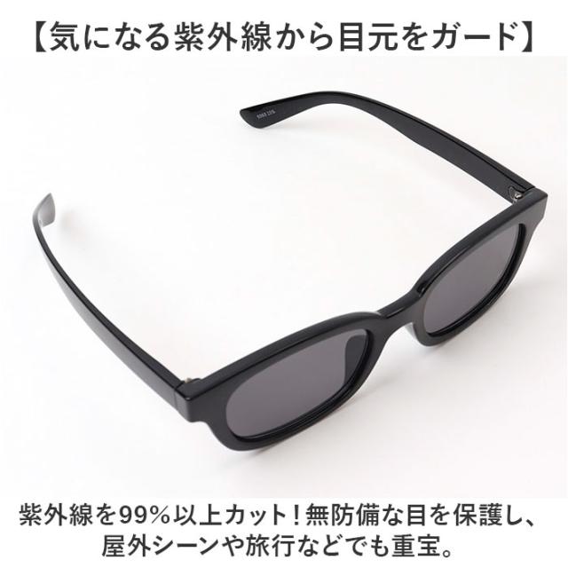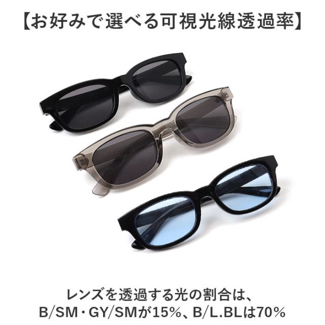 | 商品説明 | 【どなたでも似合うマストアイテム】 ・シンプルな中にこだわりを。デザイン性も機能面もしっかり考えられた「サングラス」。 【伊達メガネ感覚でおしゃれに】 ・気軽に掛けられるサングラス。80年代に流行した、細めのスクエア形状を現代風にアレンジ! 【スクエアとラウンドのイイトコドリ】 ・やや丸みを帯びた四角形のウェリントンベース。かっちりしすぎず年代や性別問わないデザイン。 【かっこよくキマるフラットレンズ】 ・レンズの表面が0カーブなので、光をシャープに反射。クラシカルな雰囲気も演出。 【柔軟性があり、掛け心地も快適】 ・厚みを抑えた、しなるテンプル。耳あたりも優しく、長時間掛けていても負担を軽減。 【気になる紫外線から目元をガード】 ・紫外線を99%以上カット!無防備な目を保護し、屋外シーンや旅行などでも重宝。 【お好みで選べる可視光線透過率】 ・レンズを透過する光の割合は、B/SM・GY/SMが15%、B/L.BLは70%。 |