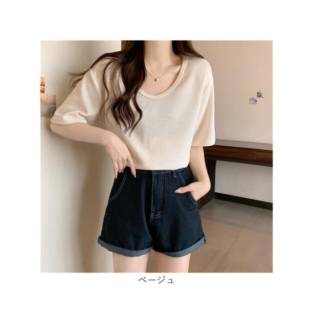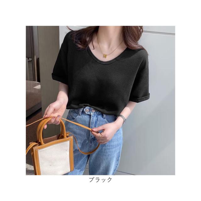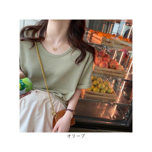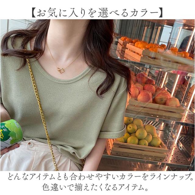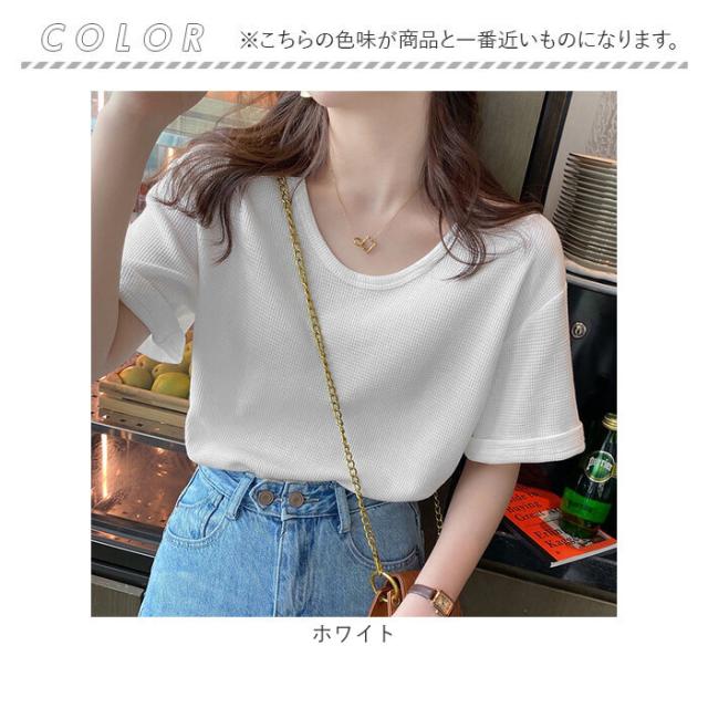 ワッフル Tシャツ 半袖 レディース 通販 ワッフル生地 半袖Tシャツ トップス カットソー おしゃれ シンプル 無地 春 夏 秋 カジュアル きれいめ 大人 オシャレ 薄手