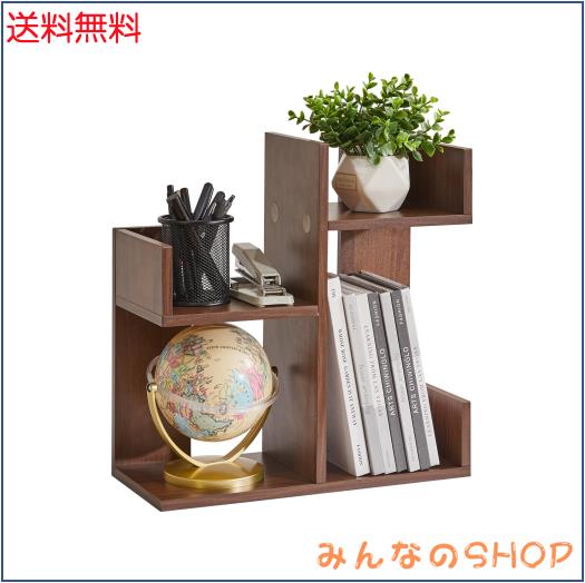 Aibiju 卓上 ラック 本棚 机上 幅40×奥行18×高さ41cm 書類立て 文房具収納 小物棚 木製 調味料ラック キッチン収納 くるみ木色 YD-DSR0