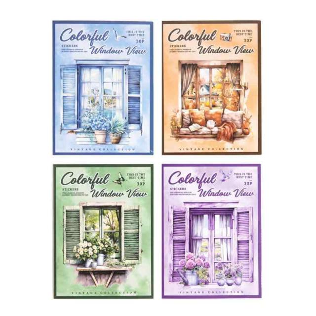 大容量商品入,レトロカラフルな窓からの眺め