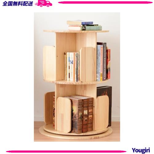 [山善] 本棚 (回転式本棚) 絵本棚 天板に物が置ける A4が入る高さ 2段 (直径50cm×高さ67.5cm) 天然木 漫画 小さい本棚 ブックシェルフ