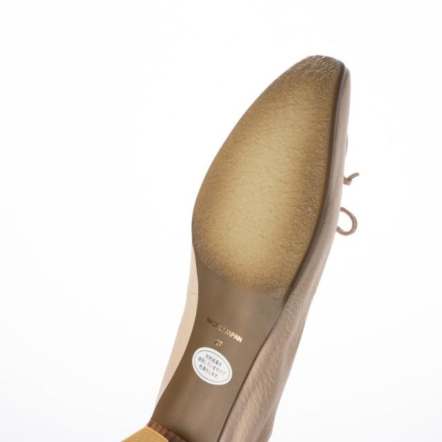 モカシンシューズのディテールをパンプスに取り入れた大人かわいいローヒールパンプス。