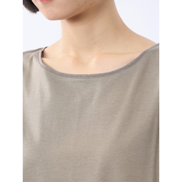 レーヨン・コットンにポリエステルを混紡したカットソー素材です。プレーティング編みした天竺生地で、布帛見えする綺麗目なルックス、シルケット加工による微光沢感、サラッとした涼しげな着心地が特徴です。