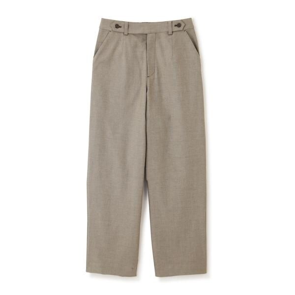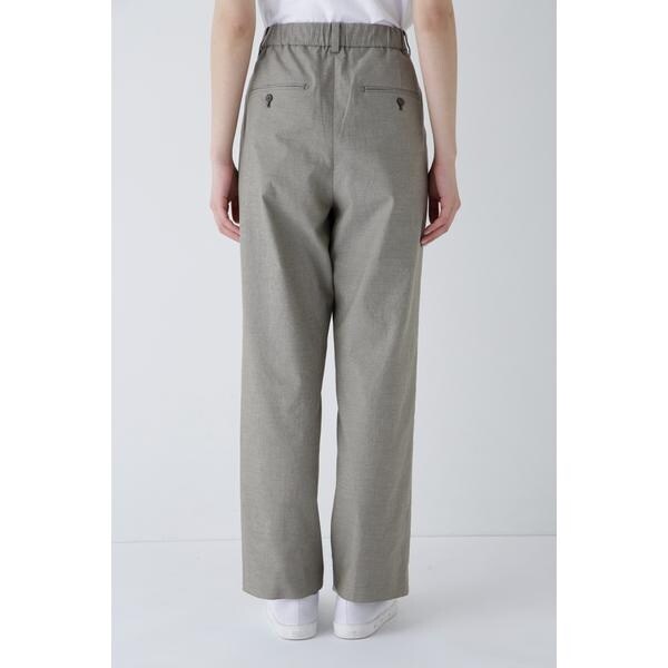 ゆったりとしたストレートシルエットのパンツです。グルカ風のウェストディテールをポイントにしています。後ウェストはゴム仕様で素材感と合わせてストレスフリーな履き心地です。
