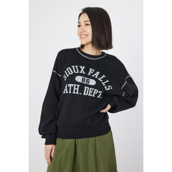 ■デザイン:ラフな仕上がりの長袖クルーネックニット。リラックスしたゆったりシルエットで、胸元のカレッジプリントがポイントです。■素材特性:もちもちした糸をスウェットのように編んだアイテム。■おすすめスタイリング:スカートと合わせたガーリーなコーディネートや、デニムなどパンツと合わせたRODEOらしいカジュアルスタイルもおすすめです。■ポケット:なし■裏地:なし■透け感:なし■伸縮性:あり※長時間ハンガーに掛けておくと、衿元などが伸びる可能性がございます。こまめにハンガーから外すなど、取り扱いには十分ご注意下さい。毛玉などが発生した場合は、はさみなどできれいにカットしてください。
