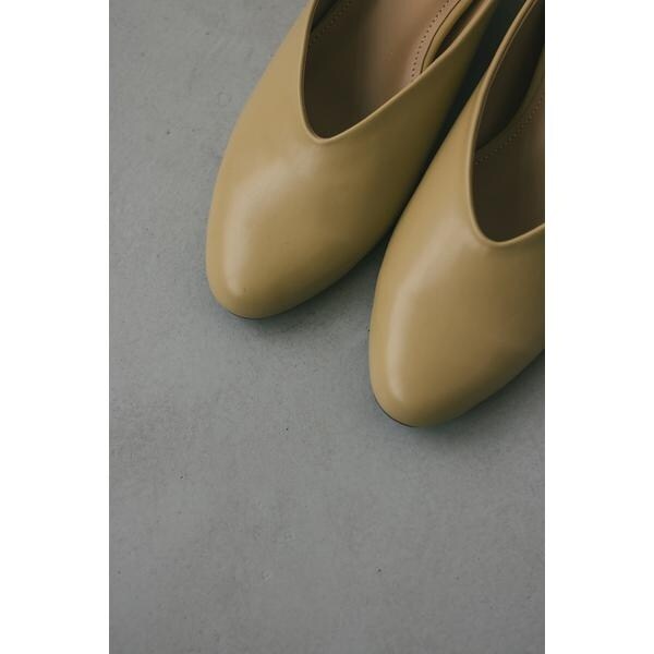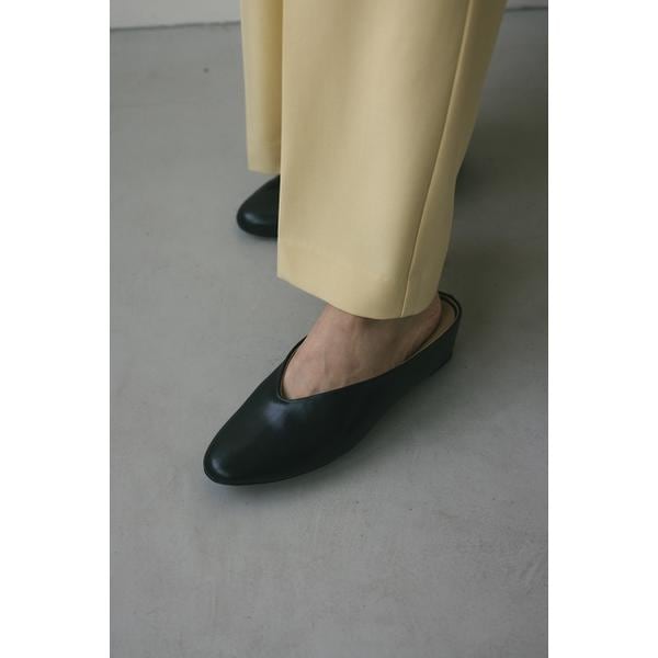 ヒール部分は生地を巻いて仕上げたインヒールミュール。ほどよい高さで安定感のある履き心地が魅力。カジュアルにもフォーマルにも着用していただけるの一足です。