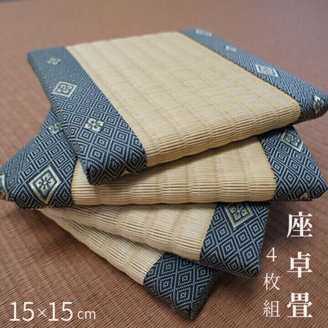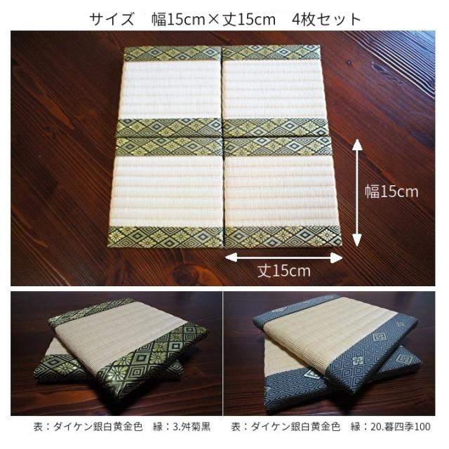 ミニ畳 座卓畳 日本製 和風生活館 テーブル脚下用 4個セット 約15×15cm 高さ約1.5cm 縁幅約2.5cm 畳表 国産い草表 ダイケン和紙表 セキスイMIGUSA市松表 表28種類 縁約90種類 リモートワーク 畳凹み防止 tatami オーダーミニ畳 職人手作り