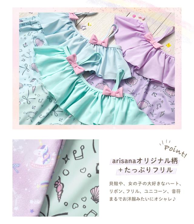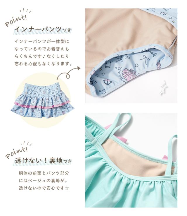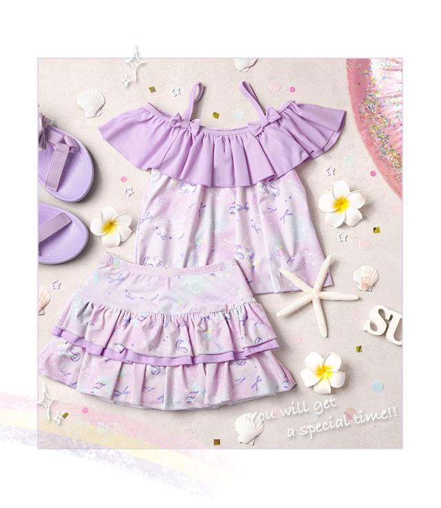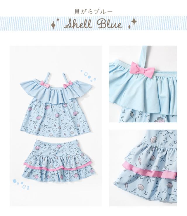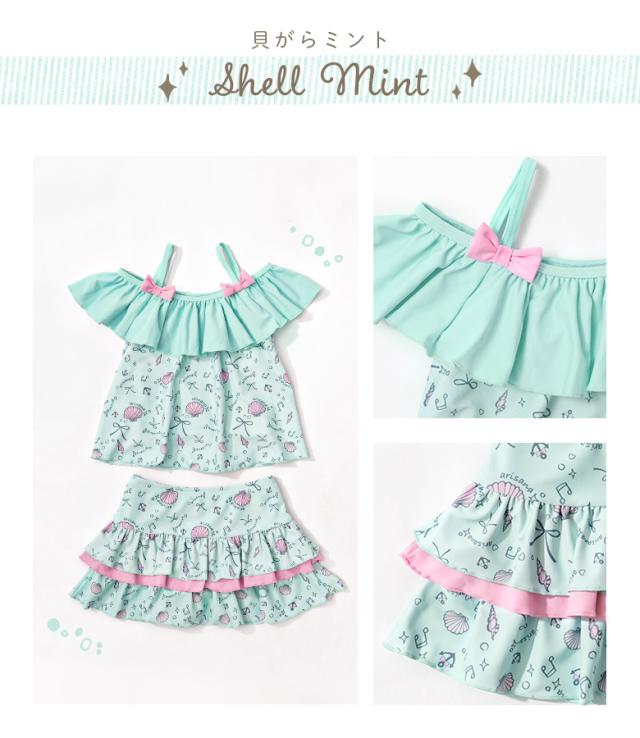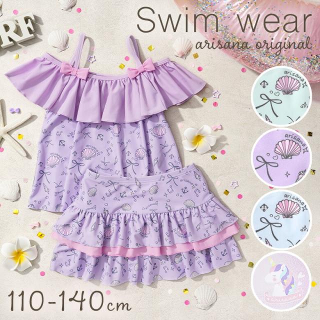 キッズ 水着 女の子 セパレート 110 120 130 140 cm ブランド 子供水着 子供 子ども こども 小学生 女子 ガールズ UVカット かわいい スイムウェア 貝殻柄 ユニコーン フリル 肩出し 肩 2way ミント ピンク ブルー