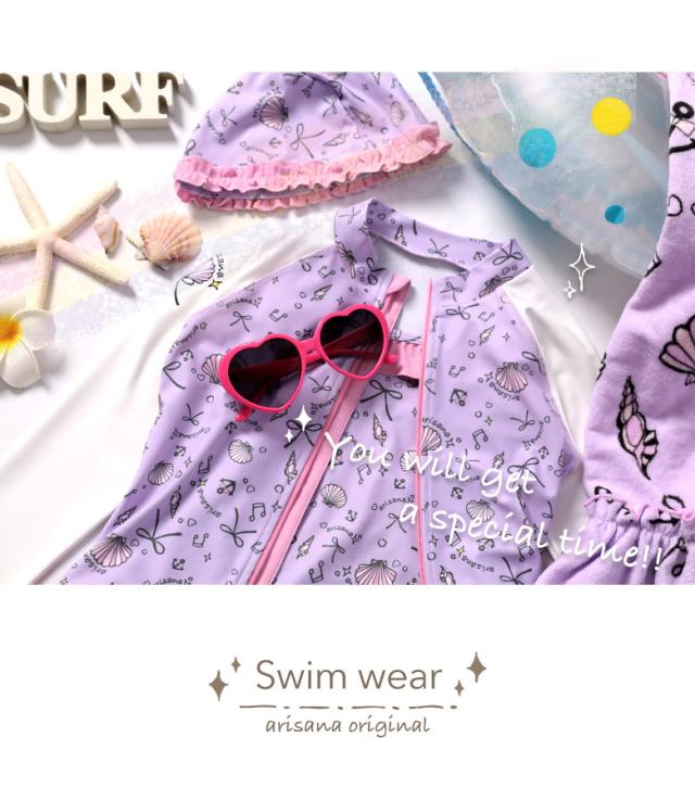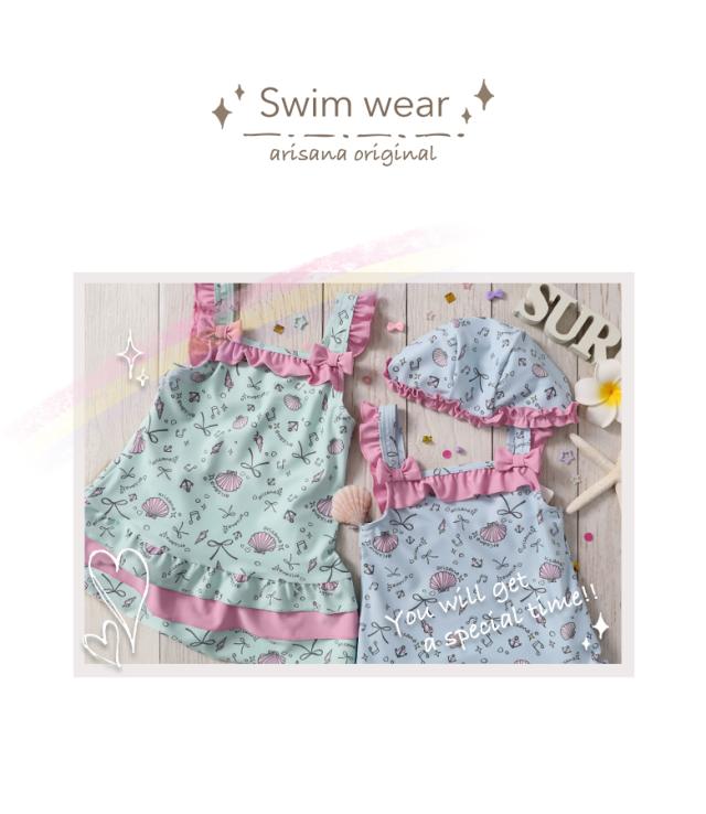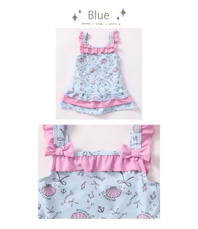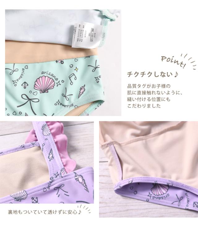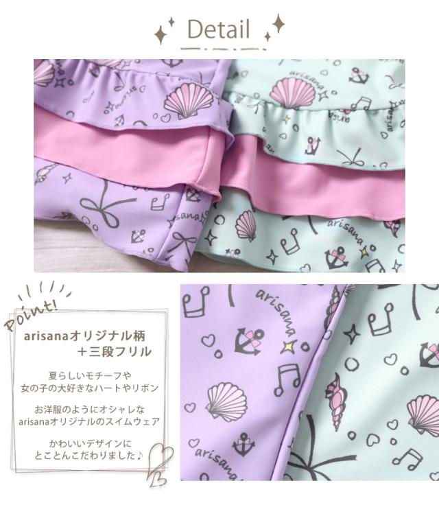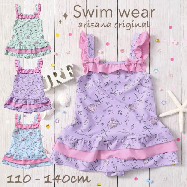 キッズ 水着 女の子 ワンピース 110 120 130 140 cm ブランド 子供水着 子供 子ども こども 小学生 女子 ガールズ UVカット かわいい スイムウェア 貝殻柄 フリル ミント ピンク ブルー arisana メール便可