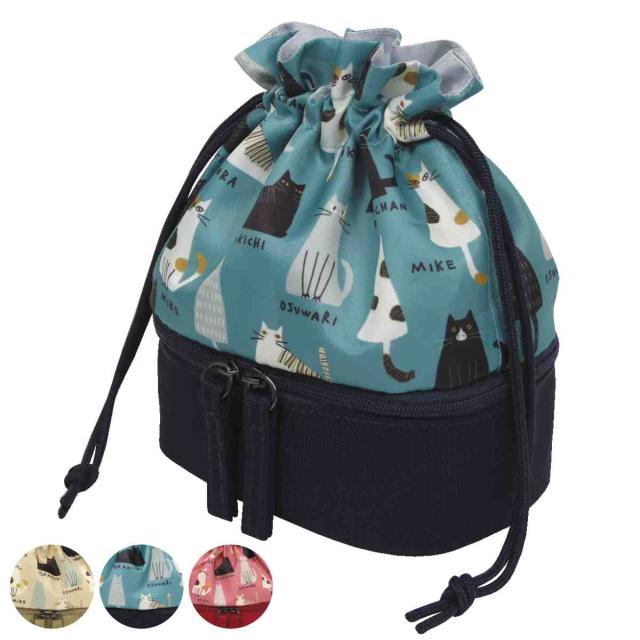 ポーチ 巾着 ダブルポーチ ネコ ( コスメポーチ 猫 ねこ 顔 巾着袋 小物入れ 動物 マルチポーチ 持ち歩き 撥水 バッグ かばん 鞄 小物収納 マルチケース かわいい 雑貨 プレゼント おしゃれ )