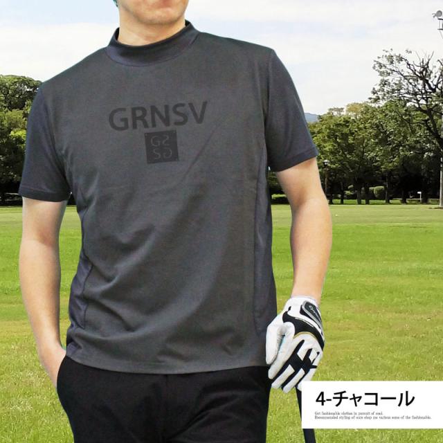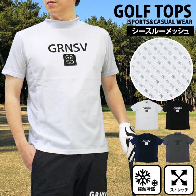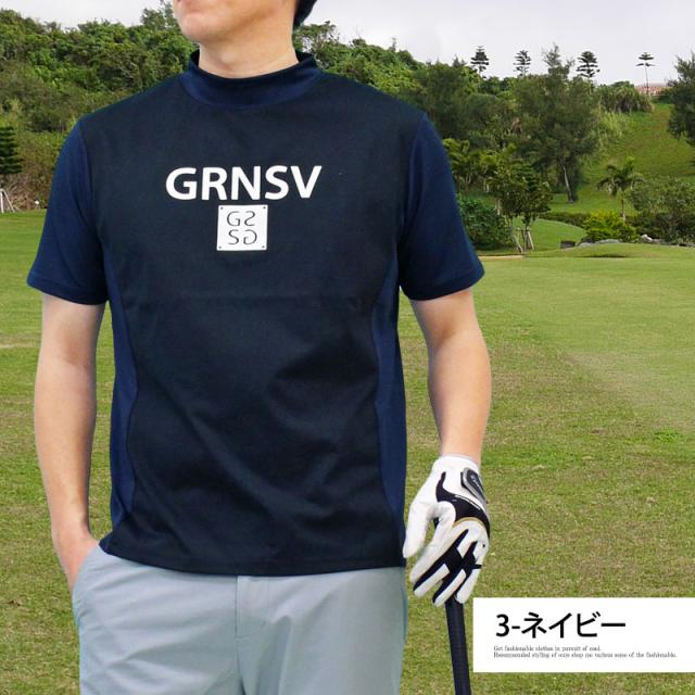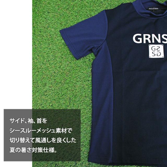 送料無料 ゴルフウェア モックネックシャツ メンズ GIORNO SEVEN ジョルノセブン ハイネック ゴルフ 接触冷感 メッシュ切替 半袖 ロゴプリント トップス ポロシャツ Tシャツ 春夏 ゆうパケ