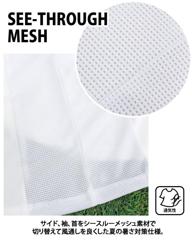 サイド、袖、首をシースルーメッシュ素材で切り替えて