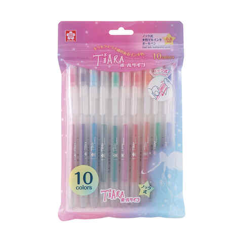 ボールサイン ティアラノック 0.8mm 10色セット ラメ入 キラキラ 水性 ゲルインキボールペン かわいい サクラクレパス 送料無料