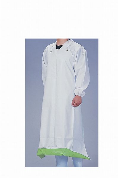 機能性エプロン ガードロン ホワイト/グリーン L 塩ビ抗菌 ひも SEP8607