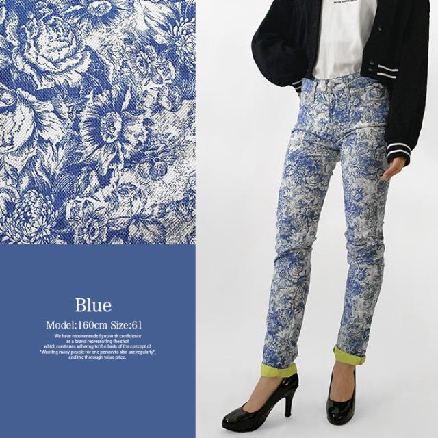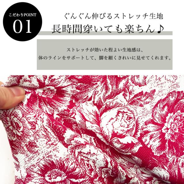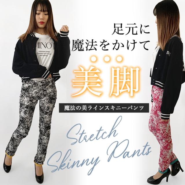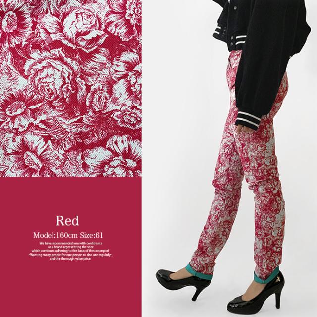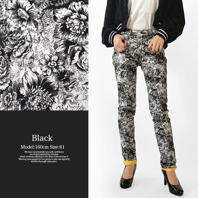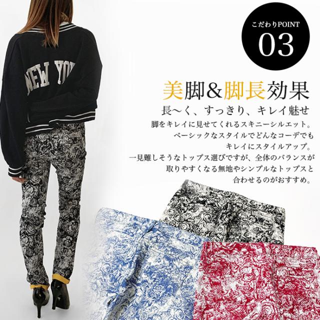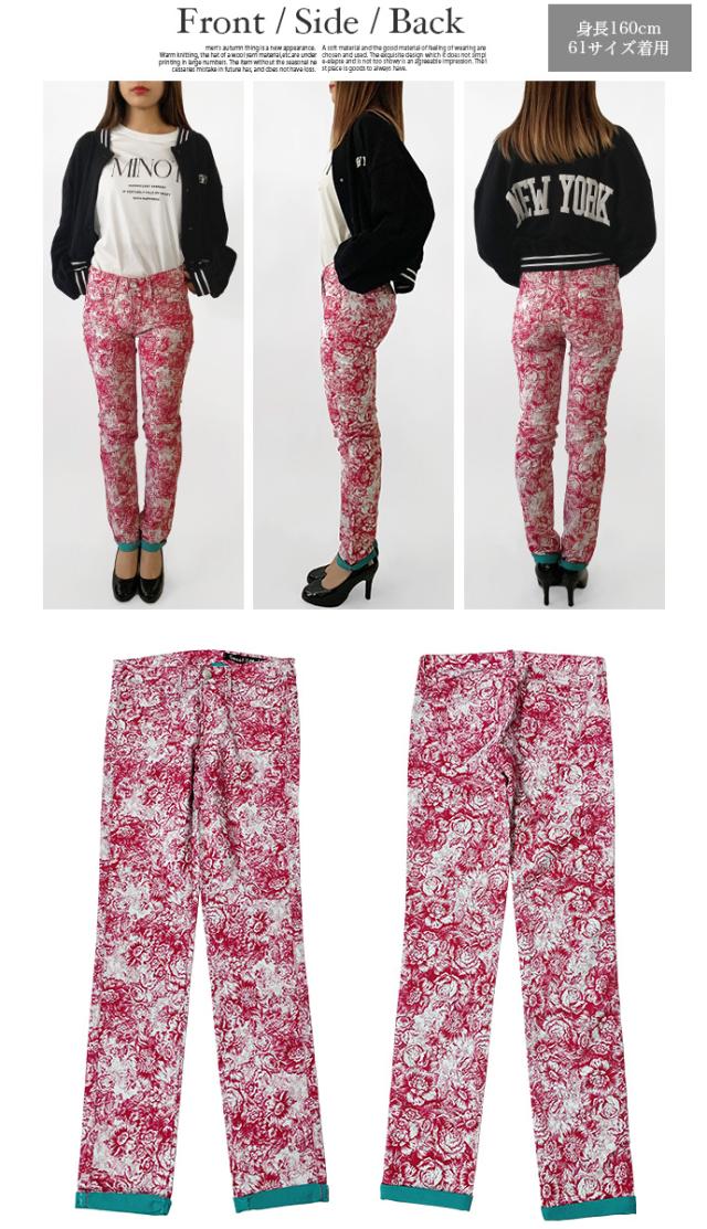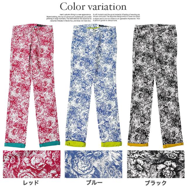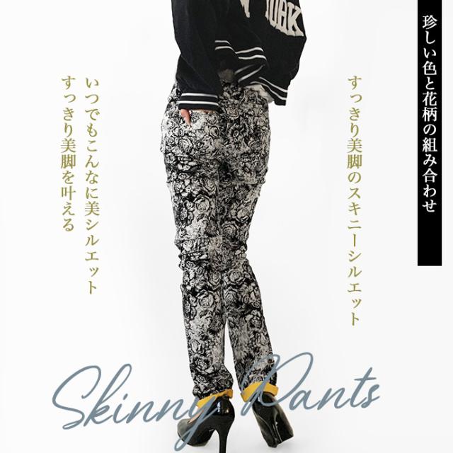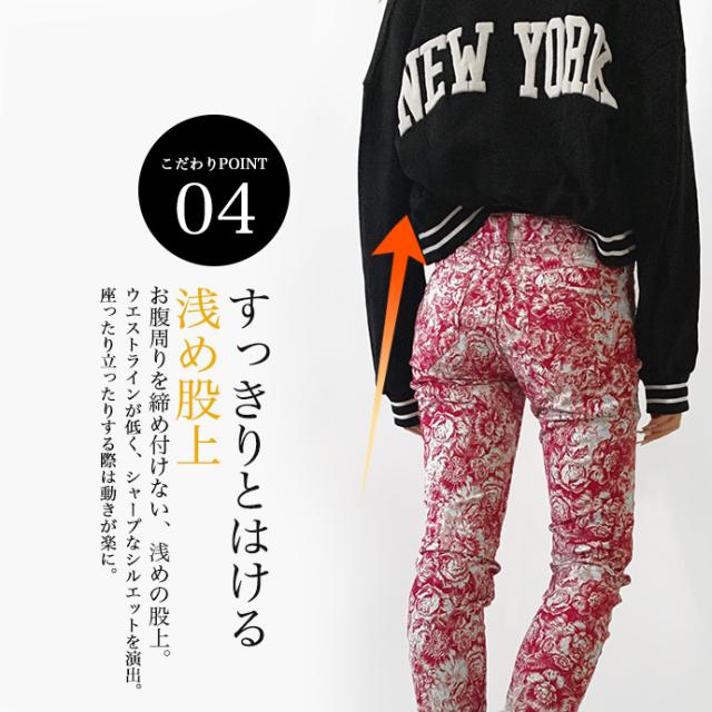 スキニー パンツ 柄パンツ ボトムス ストレッチ 細身 股上浅め 小さいサイズ 美脚 脚長 大花柄 春夏 ロールアップ Sweet Camel スイートキャメル レディース 送料無料