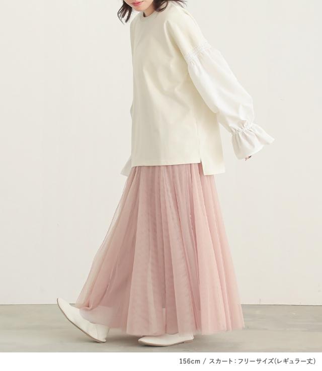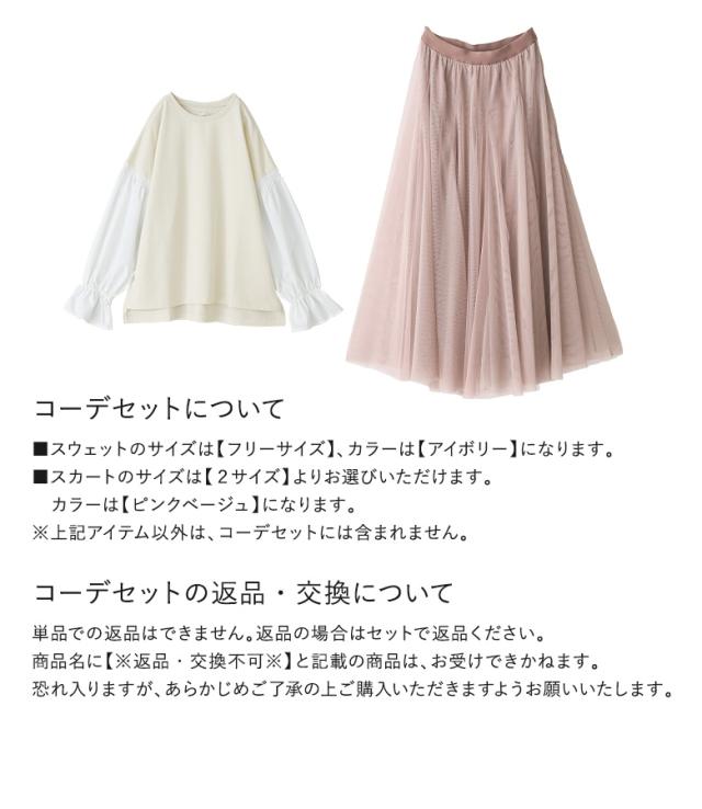 『異素材キャンディースリーブスウェット×配色ボリュームチュールスカートコーデ2点SET』【メール便不可】【20】[2点コーデセット 2025 レディース スウェット トップス 長袖 ボトムス スカート ロングスカート]