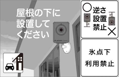 - 屋外にネットワークカメラを設置する場合は、第3者による盗難などに十分ご注意ください。
