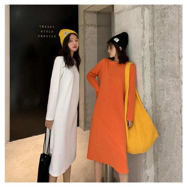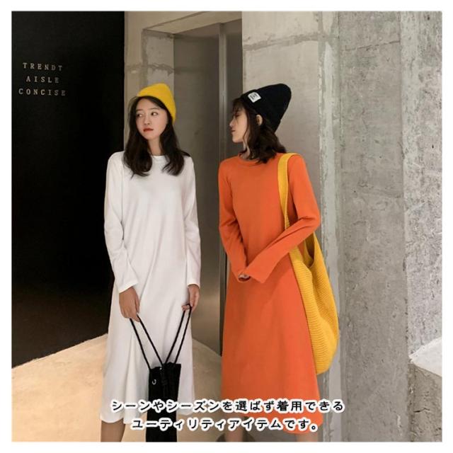長袖 ワンピース レディース Tシャツワンピ インナーワンピース 長袖Tシャツ ワンピース ロング丈 ロンT 無地 スポーティ カジュアル シンプル リラックス ルームウエア ホワイト イエロー グリーン ブラック ブルー オレンジ