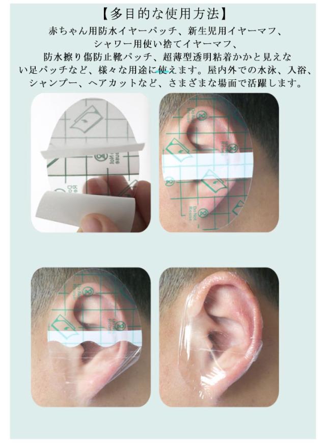 【100枚入】 防水 イヤーキャップイヤーカバー 耳キャップ 耳カバー 使い捨て 透明 イヤーパッチ シャンプー耳ステッカー 耳パッチ 耳保護 お風呂 入浴用 水泳 毛染め 髪染め キッズ 子供 ベビー 大人 水遊び ビーチ シャワー