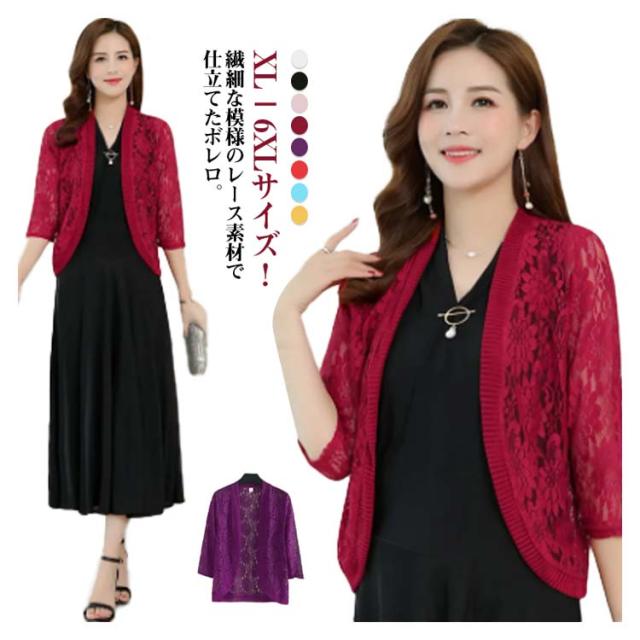 サマーカーディガン レディース 薄手 ショート丈 レースカーディガン ボレロ 総レース コンパクト 7分袖 フラワーレース 透け感 羽織り きれいめ おしゃれ カーディガン 大きいサイズ 大人 女性 冷房対策 日焼け対策 トップス 送料無料
