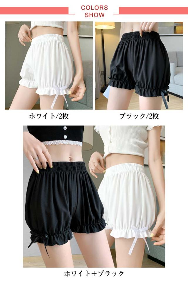 ペチパンツ タップパンツ ペチコート レディース 裾リボン フリル 2枚セット インナーパンツ ショートパンツ かぼちゃパンツ 女性下着 肌着 透け防止 無地 単色 ナチュラル かわいい おしゃれ シンプル 大人可愛い フェミニン 幅広ゴム インナーショーツ 学生 制服 送料無料