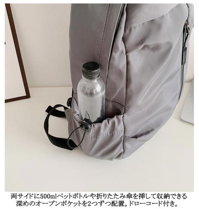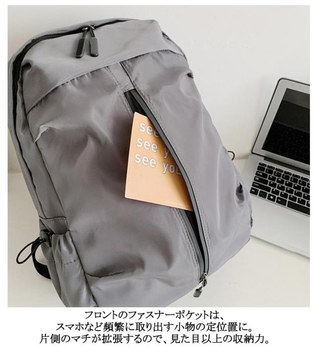 | ビジネス、カジュアルどちらにも使いやすいリュックが登場。 メイン収納はB4書類がピッタリ入るサイズ感。オープンポケットはクッション素材を使用し、ノートPCやタブレット端末も収納可能。 最前面にはスマホや手帳が入る縦型ファスナーポケットを搭載。 両サイドにはサイズ調整ができるドローコード付きポケットがあり、折りたたみ傘やドリンクの収納に便利♪ リュック背面に、スーツケースのハンドルにセットできるキャリーオンベルトを装備し、旅行用のサブバッグにも最適。 ショルダーベルトの裏側は通気性に優れたメッシュ生地で仕上げ、長時間着用するときでも快適。 タウンユースはもちろん、ビジネスや旅行でもシーンを選ばずに使えて使い勝手抜群♪ | |