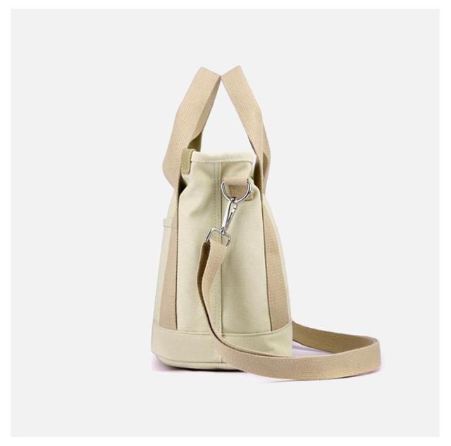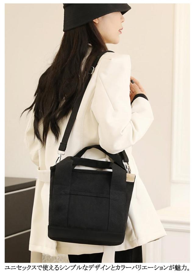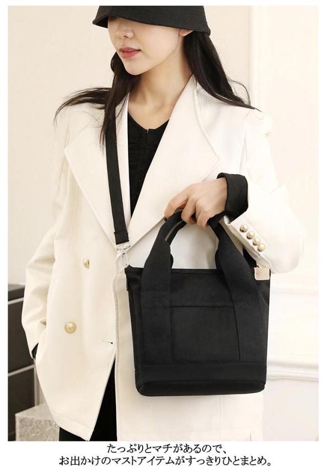 | 手持ちでも、付属のショルダーベルトをつけて肩掛け、斜めがけと2wayで使えるショルダーバッグが新登場。 手持ちとショルダーの2WAY仕様!長さ調節ができるショルダー紐は取り外し可能。必要に応じて変えられるので便利◎ メインルームはA4サイズ対応。マチがしっかりありペットボトルや長財布、ポーチなどを収納可能。 メインルームは便利な仕切りで区切られた2ルーム構造で、小物の整理が楽ちん♪仕切りは荷物のサイズに合わせてファスナーで着脱可能。 軽量でちょっとそこまでのお買い物や、サブバッグとして通勤や通学のお供にも最適。 無地のシンプルなデザインなので、通勤・通学時のランチトートやデイリー使いに最適。 | |