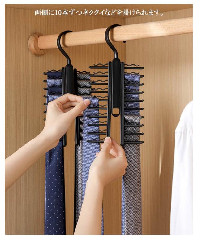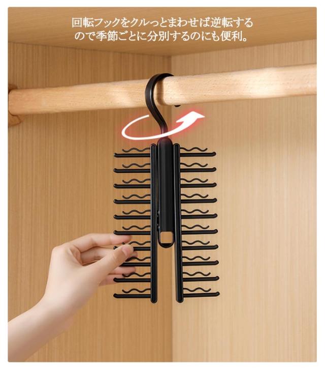 送料無料 3本セット ネクタイハンガー 20本掛け ネクタイラック ネクタイ収納 ネクタイ物干し スカーフ ハンカチ 360°回転 省スペース まとめて収納 ネクタイ ハンガー すべり落ちない ベルト整理 クローゼット シンプル ブラック