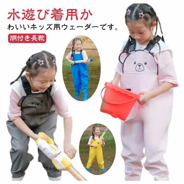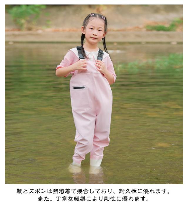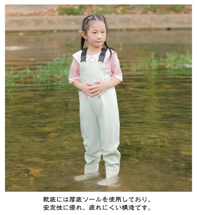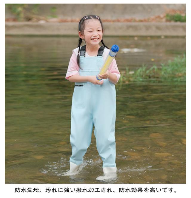 キッズ ウェーダー 子供用 水遊び プレイウェア 田んぼ 女の子 男の子 レインパンツ チェストハイウェーダー お砂場着 胴付き長靴 梅雨 長靴一体型 海 防水 遊び 釣り 潮干狩り 幼稚園 小学生 小学校 ジュニア