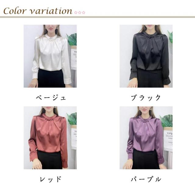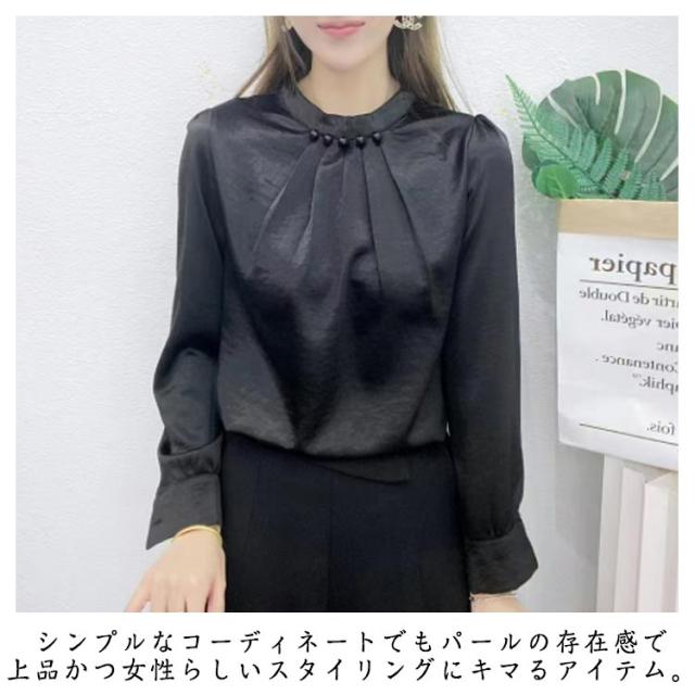 パール付き ブラウス レディース パール シャツ ハイネック 長袖 プチハイネックブラウス 長袖ブラウス フォーマル トップス フォーマルブラウス オフィスブラウス 長袖ブラウスレディース フォーマルブラウス 送料無料