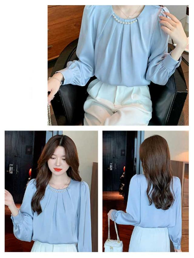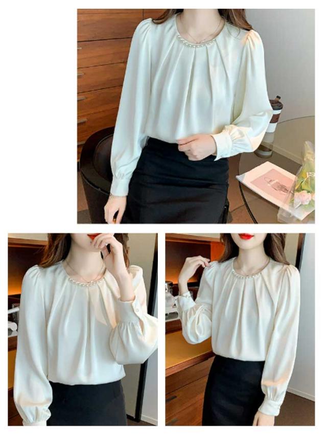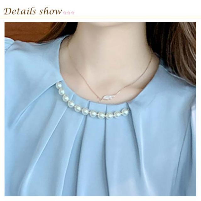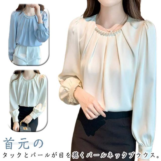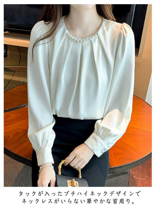 パール付き ブラウス レディース パール シャツ 無地 長袖 プチハイネックブラウス 長袖ブラウス フォーマル トップス フォーマルブラウス オフィスブラウス 長袖ブラウスレディース フォーマルブラウス 送料無料