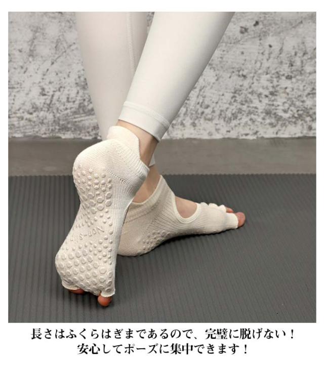 | ヨガ・ピラティスなどに最適な室内履きソックス 指先のない5本指オープントウタイプ 素足に近い感覚で地面をとらえる、かかとあきタイプ ヨガマットなしでも、しっかり踏ん張れる強力なすべり止め付き 長さはふくらはぎまであるので、完璧に脱げない!安心してポーズに集中できます! | |