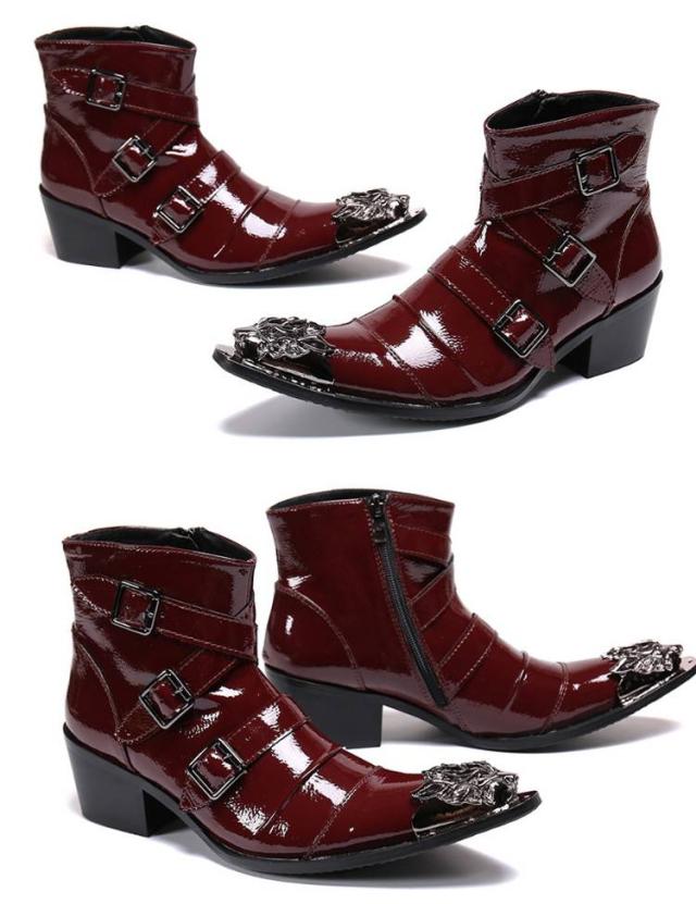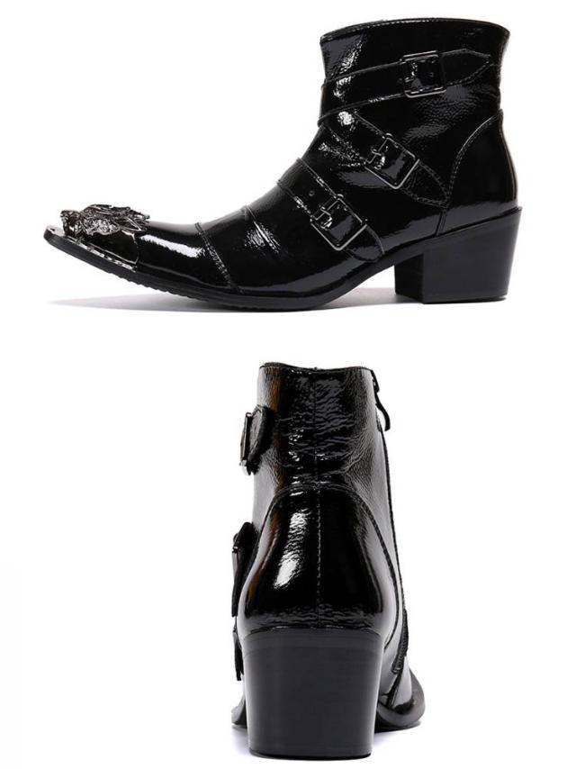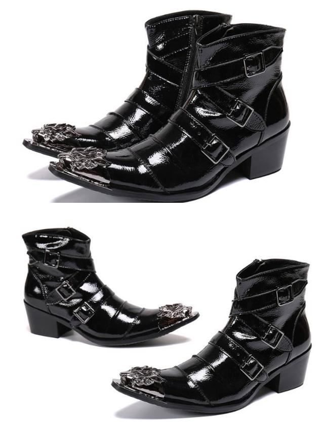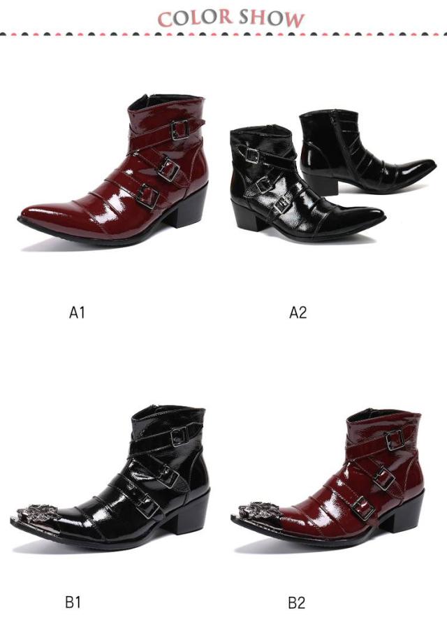 2種 ベルト ブーツ メンズ 本革 エナメル ヒール ドレスシューズ ドレスブーツ ショートブーツ ステージ衣装 ホストブーツ ポインテッドトゥ ローヒール お兄系 渋谷系 モード系 3本ベルト ホスト系 紳士靴 23.5-28cm