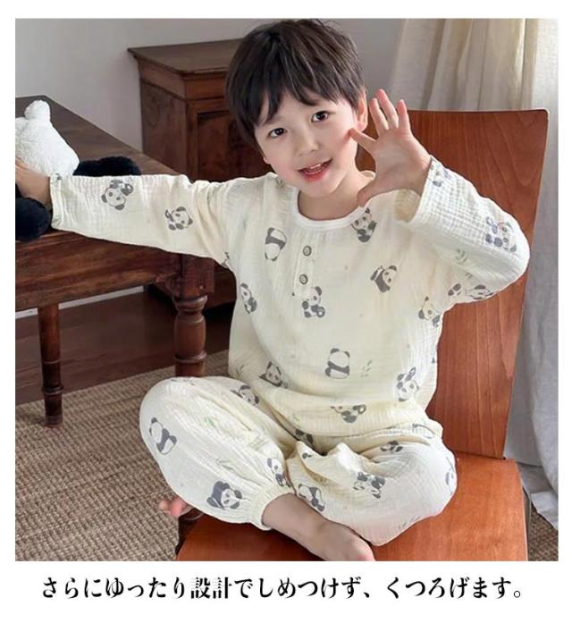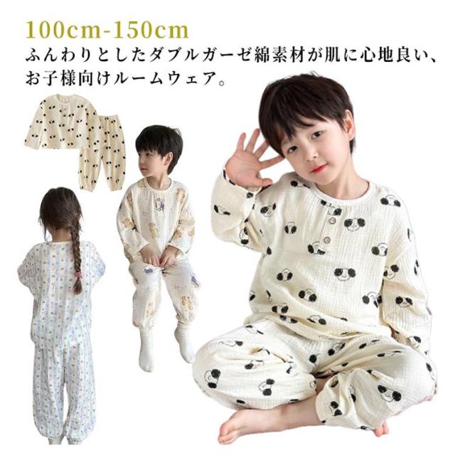 ダブルガーゼ パジャマ キッズ ガーゼパジャマ 長袖 男の子 女の子 綿 長袖 ルームウェア 部屋着 春 秋 子供 ジュニア 小学生 ユニセックス かわいい おしゃれ 修学旅行 100 110 120 130 140 150cm