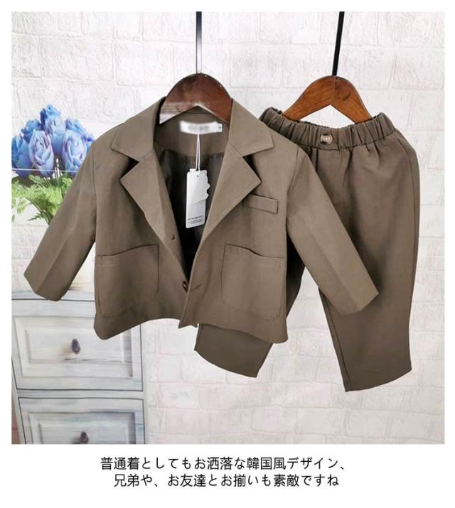 韓国 子供 スーツ フォーマルスーツ 男の子 キッズスーツ 2点セット おしゃれ 子供服 卒業式 入学式 発表会 入園式 結婚式 スーツ 七五三 90 100 110 120 130cm 発表会 お受験 送料無料 ベージュ ブラウン グリーン グレー