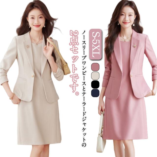 セレモニースーツ レディース スーツ ワンピース テーラードジャケット 2点セット フォーマルスーツ ママスーツ 入学式 卒業式 お宮参り 七五三 ワンピーススーツ 大きいサイズ ノースリーブワンピース 春 夏 30代 40代 50代 黒 紺 ネイビー ベージュ 【送無】