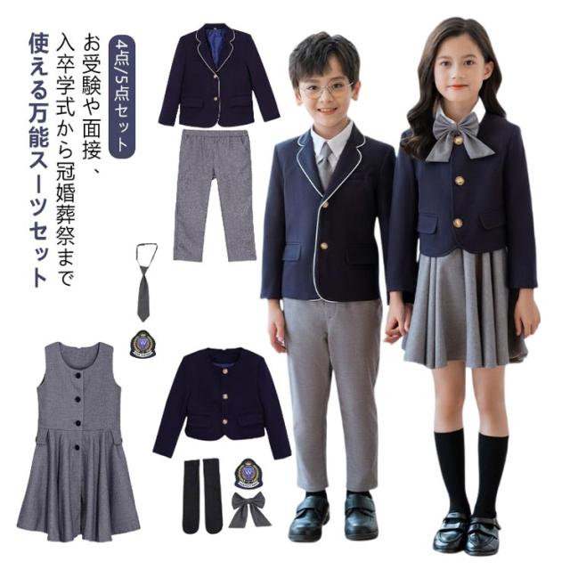 キッズ スーツ フォーマル スーツ 制服 4点/5点セット 女の子 男の子 子供 ジュニア 入学式 入園式 卒業式 七五三 結婚式 発表会 お宮参り記念日 小学生 幼稚園 セレモニー 韓国 ピアノ発表会 衣装 送料無料