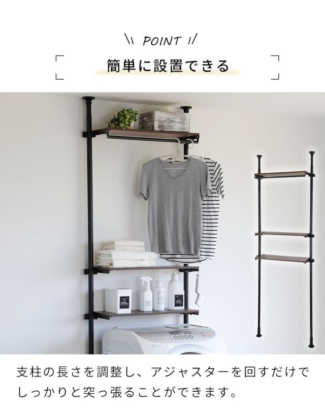 【値下げ】ランドリーラック 突っ張りラック 幅80cm 3段 突っ張りランドリーラック 縦型 洗濯機ラック おしゃれ 突っ張り洗濯機ラック ハンガーラック ゴミ箱上 つっぱりラック 洗濯機棚 高さ調節 伸縮 洗面所 ランドリー 収納 棚 オープンラック トイレラック