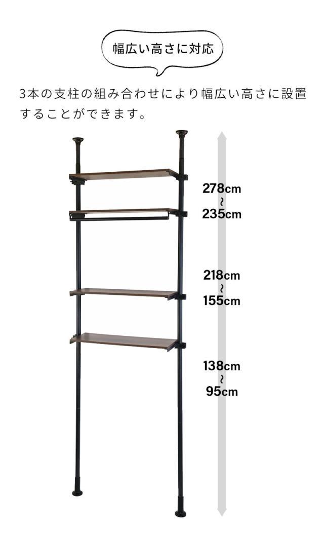 設置可能高さ:95〜138cm・155〜218cm・235〜278cm