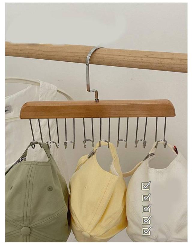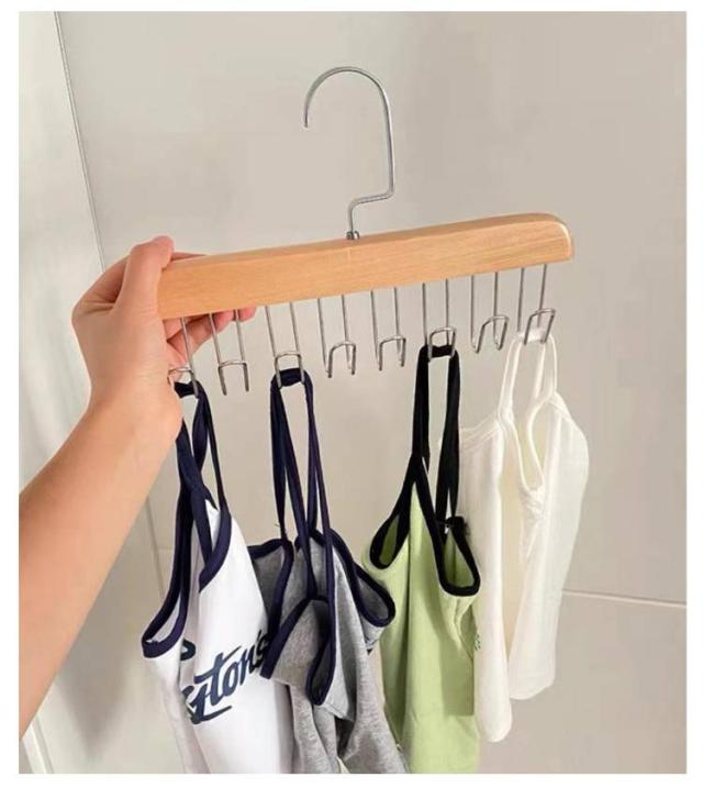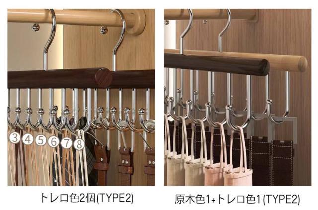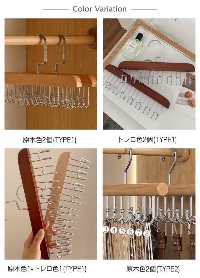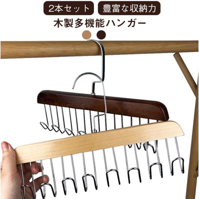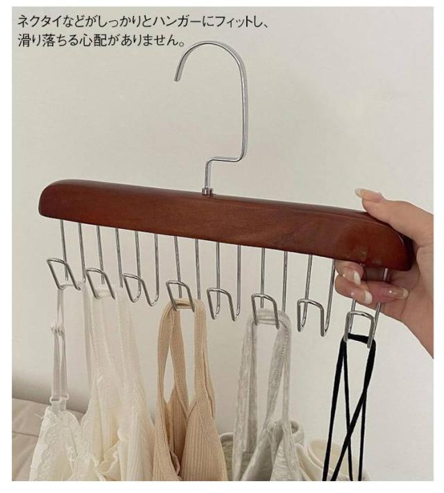 【2本セット】木製 ハンガー ネクタイハンガー すべらない 8フック付き ベルトハンガー 下着ハンガー キャミソールハンガー ハンガー ラック 収納 スカーフハンガー 省スペース 送料無料