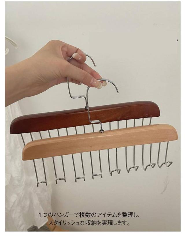 | ネクタイやキャミソールなどを最大24本掛けられる多機能ハンガー。 高品質で選び抜かれた無垢材を使用し、丈夫で長持ちします。 ネクタイなどがしっかりとハンガーにフィットし、滑り落ちる心配がありません。 ネクタイだけでなく、ベルトや他の小物も掛けることができます。 1つのハンガーで複数のアイテムを整理し、スタイリッシュな収納を実現します。 | |