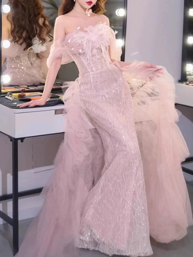 ドレス オフショルダー マーメイドライン 大人 ピアノ 発表会 ロングドレス 演奏会 演奏会用ドレス ピアノ発表会 結婚式 パーティードレス 大きいサイズ コンクール イブニングドレス ロング 演奏会ドレス 小さいサイズ