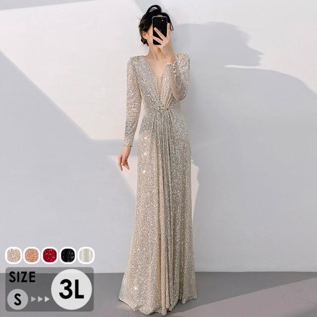 ドレス 大人 ピアノ 発表会 ロングドレス Vネック 長袖 演奏会 演奏会用ドレス ピアノ発表会 黒 結婚式 高校生 パーティードレス 大きいサイズ 母親 コンクール イブニングドレス ロング 演奏会ドレス 赤 キラキラ