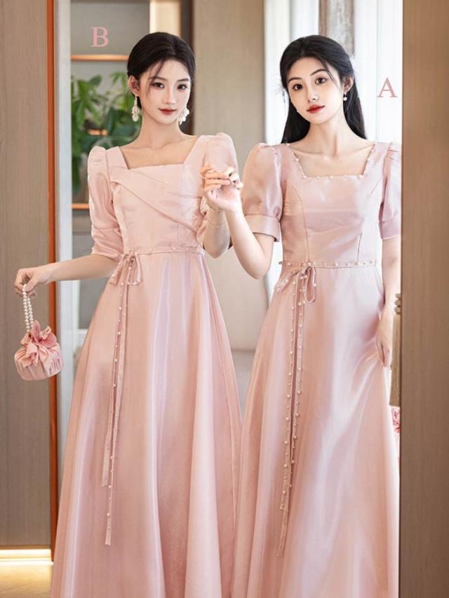 パーティードレス ロング 演奏会 ピンク グリーン 2タイプ ロングドレス 大人 ピアノ 発表会 袖あり ブライズメイド ドレス 袖あり 20代 30代 大人 上品 お呼ばれドレス ad038m3m3m5