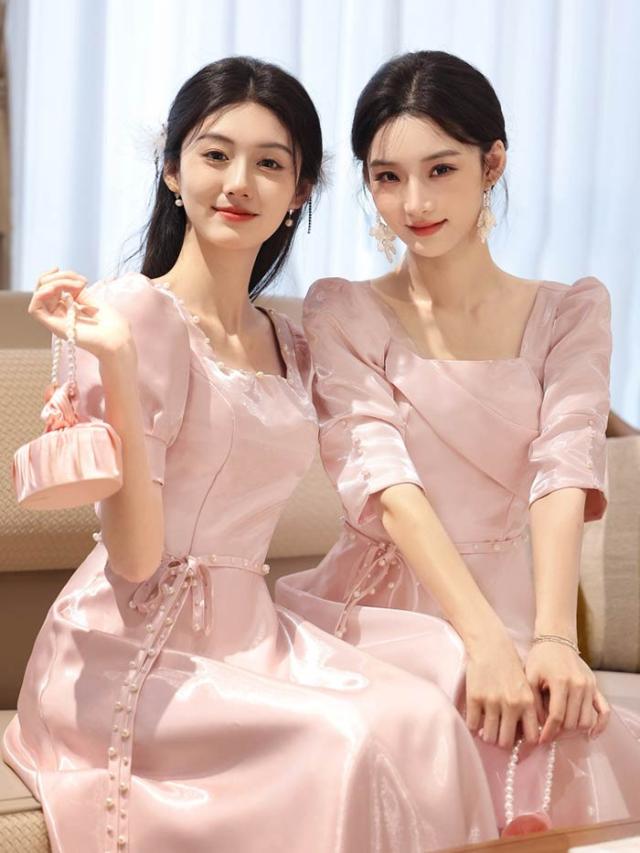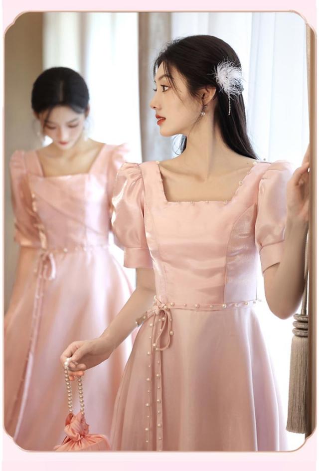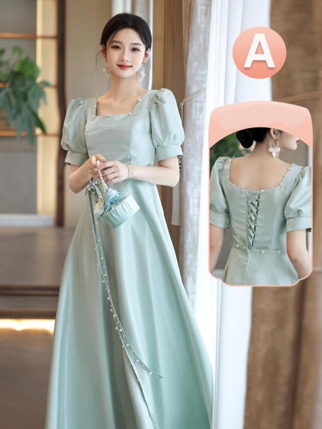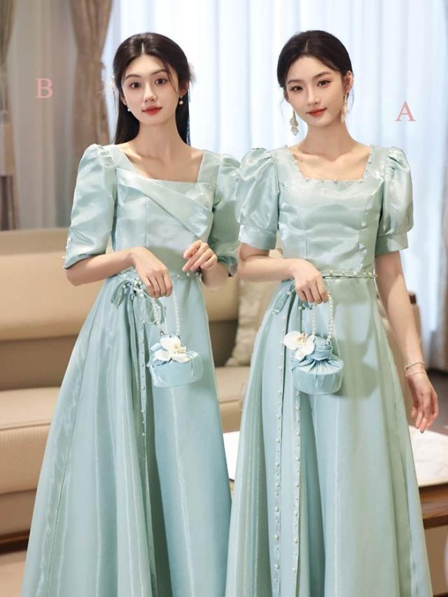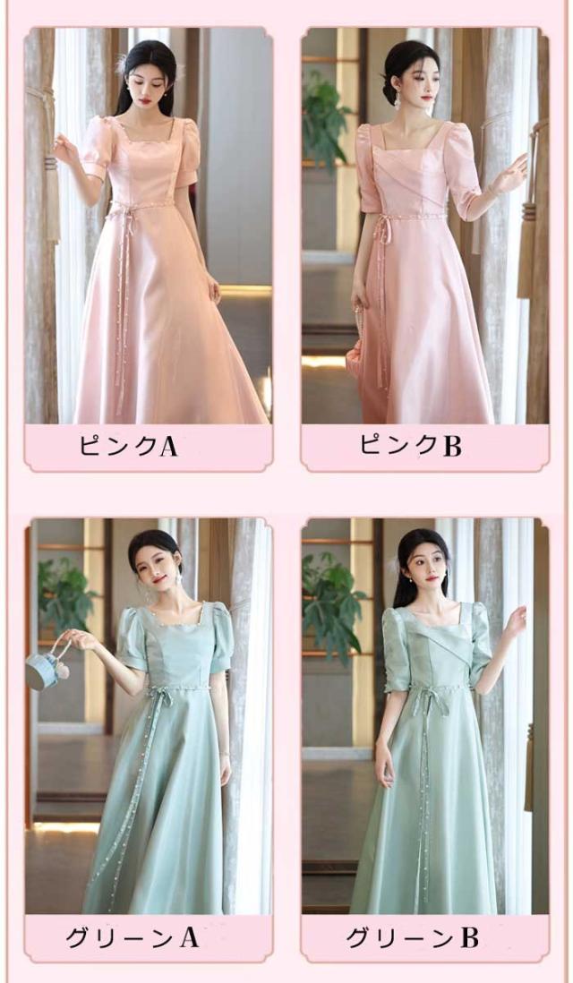 パーティードレス ロング 演奏会 ピンク グリーン 2タイプ ロングドレス 大人 ピアノ 発表会 袖あり ブライズメイド ドレス 袖あり 20代 30代 大人 上品 お呼ばれドレス