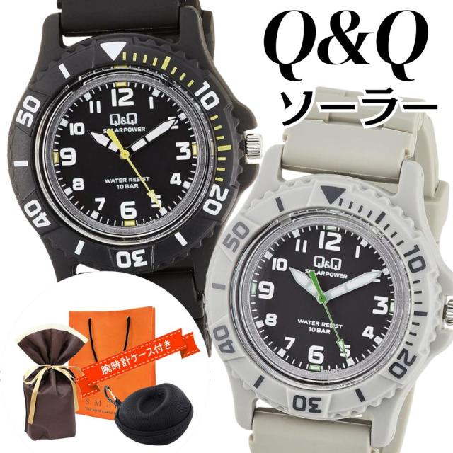 ラッピング済 ギフトセット ペアウォッチ Q&Q ソーラー 腕時計 防水 電池交換不要 海水浴 水に強い マリンスポーツ 釣り アウトドア 水泳 シチズン ブラック グレー 手提げ紙袋つき 時計ケース付 一緒に使える お揃い 友達 恋人 家族 両親 結婚記念日 誕生日プレゼント