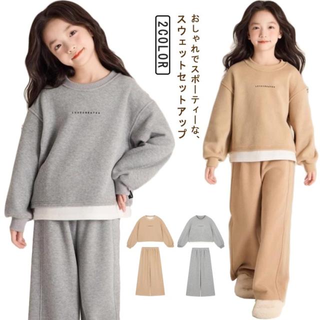 韓国 おしゃれ セットアップ 部屋着 ジャージ 風 女の子 上下 2点 韓国風セットアップ 上下 子供服 ルームウェア キッズ 韓国風セットアップ カジュアル 美脚 細身 スポーツ 運動 長袖 トレーナー スエット ルームウェア 子ども ジュニア 110 120 130 140 150 160