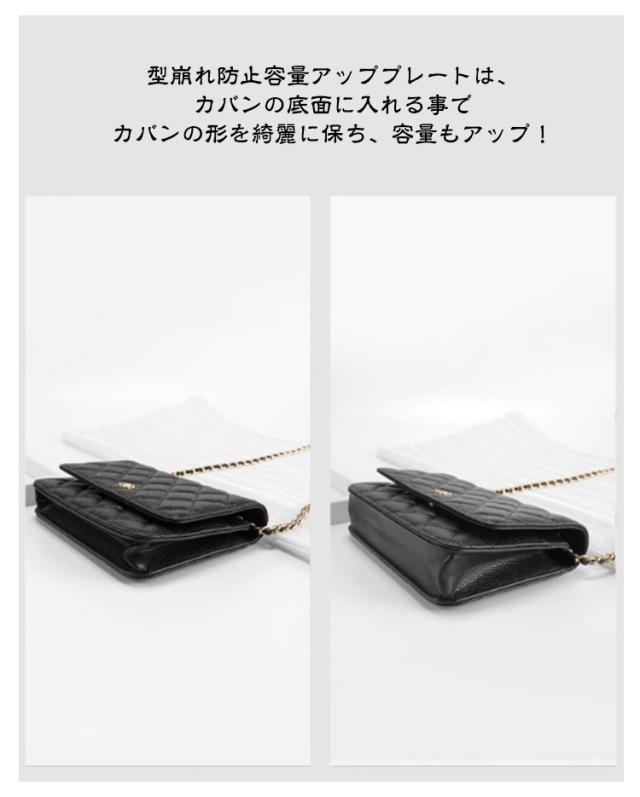 | 【4点セット】【摩耗防止パッド】 大事なチェーンウォレットを長く綺麗にお使いいただくための専用バッグアクセサリー 型崩れ防止容量アッププレートは、カバンの底面に入れる事でカバンの形を綺麗に保ち、容量もアップ! エッジ擦れ防止プレートは、チェーンによるカバンのエッジ部分のスレを防止! | |