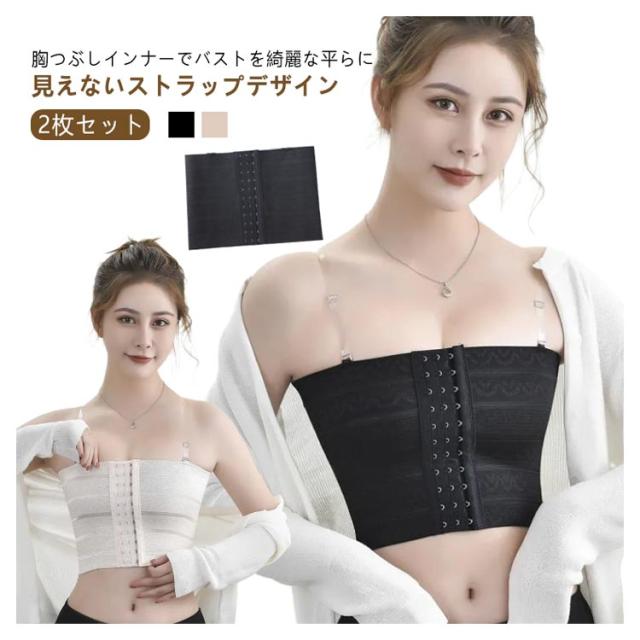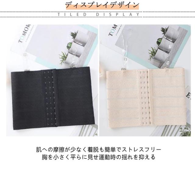 | 胸つぶしインナーでバストを綺麗な平らに♪ 見えないストラップデザイン 【2枚セット】 【大きな胸を小さく見せる 胸つぶしインナー!】 二重構造のホールドデザインで余ったお肉をしっかりタイトにホールド。 大きい胸を目立ちにくくします。 3段階の調節が可能なフロントホック。ホールド力があり、調節の自由度も高いのが特徴です。 丈夫で摩擦に強い縫製だから耐久性◎ 柔らかく肌に優しい生地を採用しています。汗をよく吸収し乾きやすいので快適な着心地が長時間続きます。 ・フロントホック式 ・チューブトップ型 ・肌への摩擦が少なく着脱も簡単でストレスフリー ・胸を小さく平らに見せ運動時の揺れを抑える ・優れた伸縮性と肌触りで長時間の着用でも快適 ・吸汗・速乾柔らかく肌に優しい生地 | |